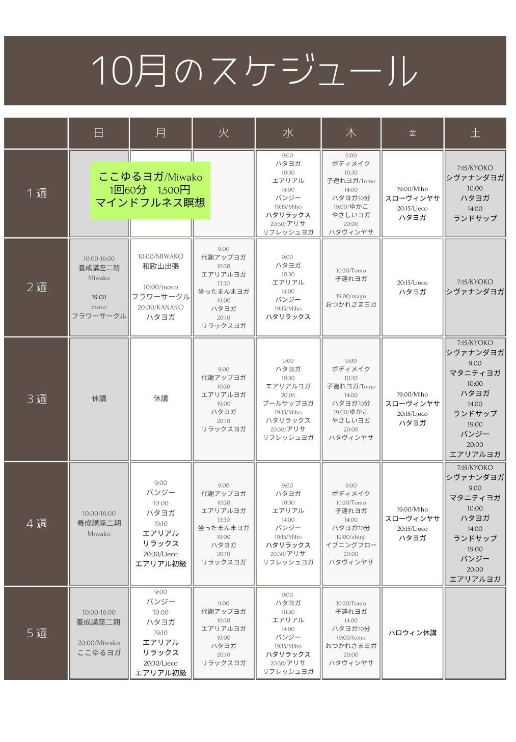 📢【10月ヨガハウスRumahSayaスケジュール公開】